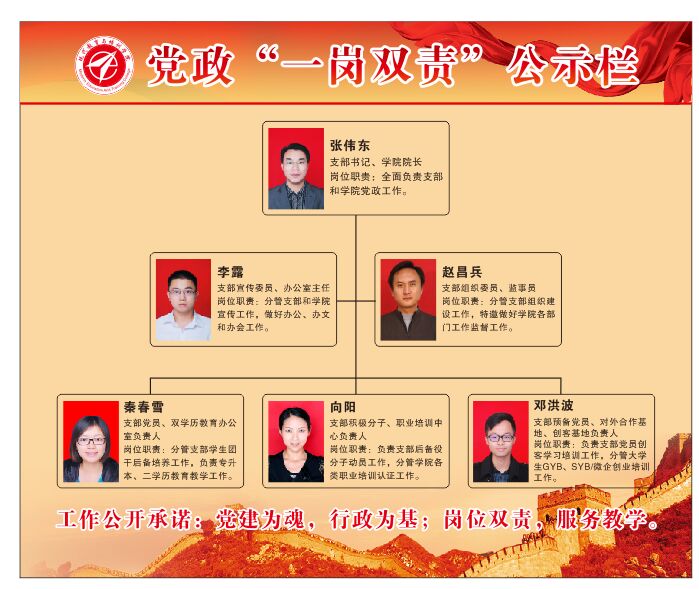 工作职责:协助完成铜梁校区第二学历招生宣传管理工作、双学历开班准备、配合辅助秦老师对双学历班级的日常教学管理以及双学历相关工作的开展;与其他小组通力配合,完成学院各项工作。
